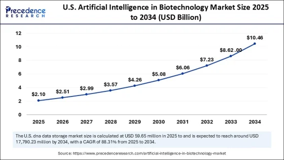 U.S. Artificial Intelligence in Biotechnology Market Size to Hit USD 10.46 Billion by 2034